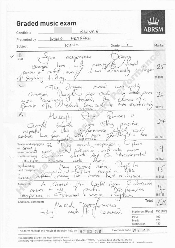 :: Students' Achievements (Examination) :: Kianna (Gr.7 Merit)