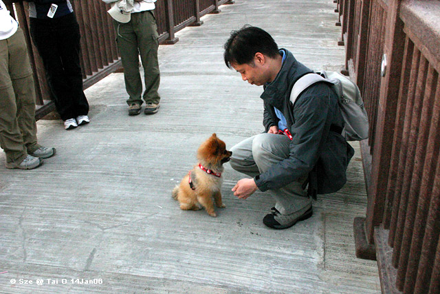 Sze :: 在大澳長堤上,遇上100%可愛松鼠狗! :: 小狗與主人 TaiOCamp14-15Jan06_10060d