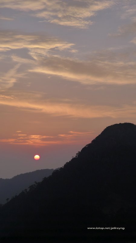 Jeffrey :: 雪山聖稜線第二天(上): 品田斷崖 :: 5:00 起步上品田山, 上山離開山屋,回望池有山, 有好正的日出