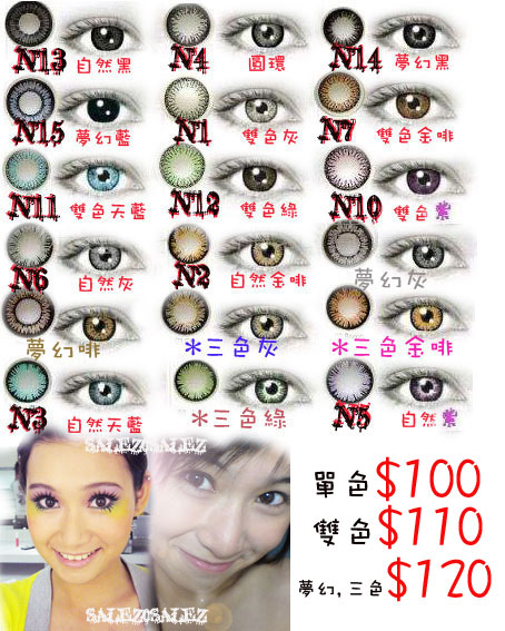 Kammy :: 訂購- 增大增黑增亮隱形眼鏡 :: ( 美星 ) N1~N18 單色$100,雙色$110,三色$120