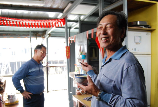 . 蜑家人情 . 「我屋企同鄰居簡直就係一家人咁。」住在大澳的水上人黃伯,正表現出大澳的濃厚人情味。活在棚屋的蜑家人,都認同大澳是最好的安樂窩。 黃伯自出世便住在棚屋,至今已六十多年,他與妻子過著悠閑生活。問他不怕悶嗎? 他回答:「呢度個個都好好,好多鄰居陪我口地。我同隔離屋個張伯由細玩到大,以前我口地一齊打魚,依家大家都退休,我口地仲一齊釣魚。」 黃伯的生活很簡單,平日與鄰居聊天、打麻雀和釣魚,假日時便與家人相聚。每當吃飯的時候,他都喜歡和鄰居閒話家常,黃伯說:「晚晚隔離屋都會望下大家食咩餸,好隨和。」正因鄰居之間的融洽關係,建立出濃厚的人情味。黃伯的妻子更經常弄一點食物,例如炸魚肚,與鄰居分享。 走進黃伯的屋內,看見每戶都是相通,鄰居之間沒有距離,居民之間常常在大家的屋內穿梭。房屋雖然不大,但他們的生活,非常親切。 每當他們的兒孫回來,棚屋內外都充滿歡笑聲。鄰居張伯的女兒張小姐每逢假日便會帶兒子回來大澳。她說:「第日退休,我都會搬返口黎住,呢度好開心,市區既人情味無呢度咁好,我個仔都好鐘意呢度。」即使搬出了市區的原居民後代,仍保留著大澳的人情味。 另一鄰居的女婿阿梁,他雖不是大澳原居民,但來到這個蜑家人的家庭,亦感受到這裡的人情味。他覺得:「就算我唔喺呢度大,老左都想喺呢度住,呢度真係好舒服,個個都好親切。」 當張伯的外孫馮政都說:「我好鐘意呢度呀,呢度可以見到公公,又有好多人同我玩。」那麼,他能否把大澳的人情味,一直延續下去?大澳又會否永遠成為這些小朋友心中的安樂窩?