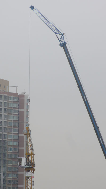lclun :: Kanson GMK6300L + 12m fly-jib dismantling Potain MD235 :: 2016022728