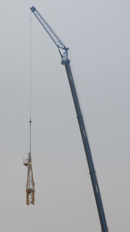 Kanson GMK6300L + 12m fly-jib dismantling Potain MD235