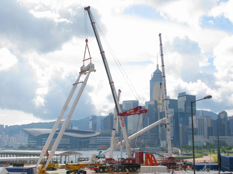 Set Win LTM1400-7.1, LTM1200-5.1 and LTM1100-4.2 lifting the main structure of ferris wheel