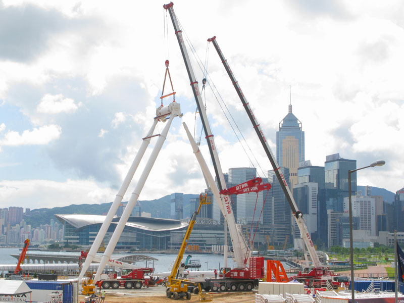 Set Win LTM1400-7.1, LTM1200-5.1 and LTM1100-4.2 lifting the main structure of ferris wheel