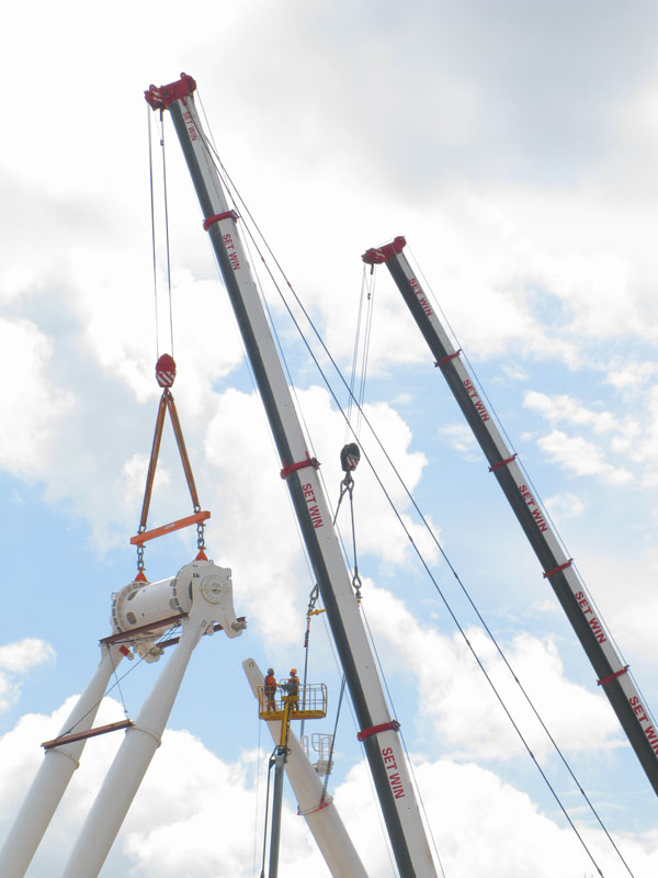 Set Win LTM1400-7.1, LTM1200-5.1 and LTM1100-4.2 lifting the main structure of ferris wheel