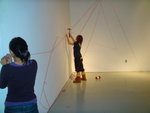 Annie's Comments: Liz did not have an actual planning for the webs. Nevertheless, I actually like that because we could work individually and do whatever we wanted to, while we all knew that we were working on the same thing, and what we did would corporate into one work. Hence, it was really a group project. I focused the most at the door part. I actually wanted to make people bound down when they entering the room because I wanted them to engage at the first place. However, I would prefer to have more time for this project, so we could make it to be more a cave-like.