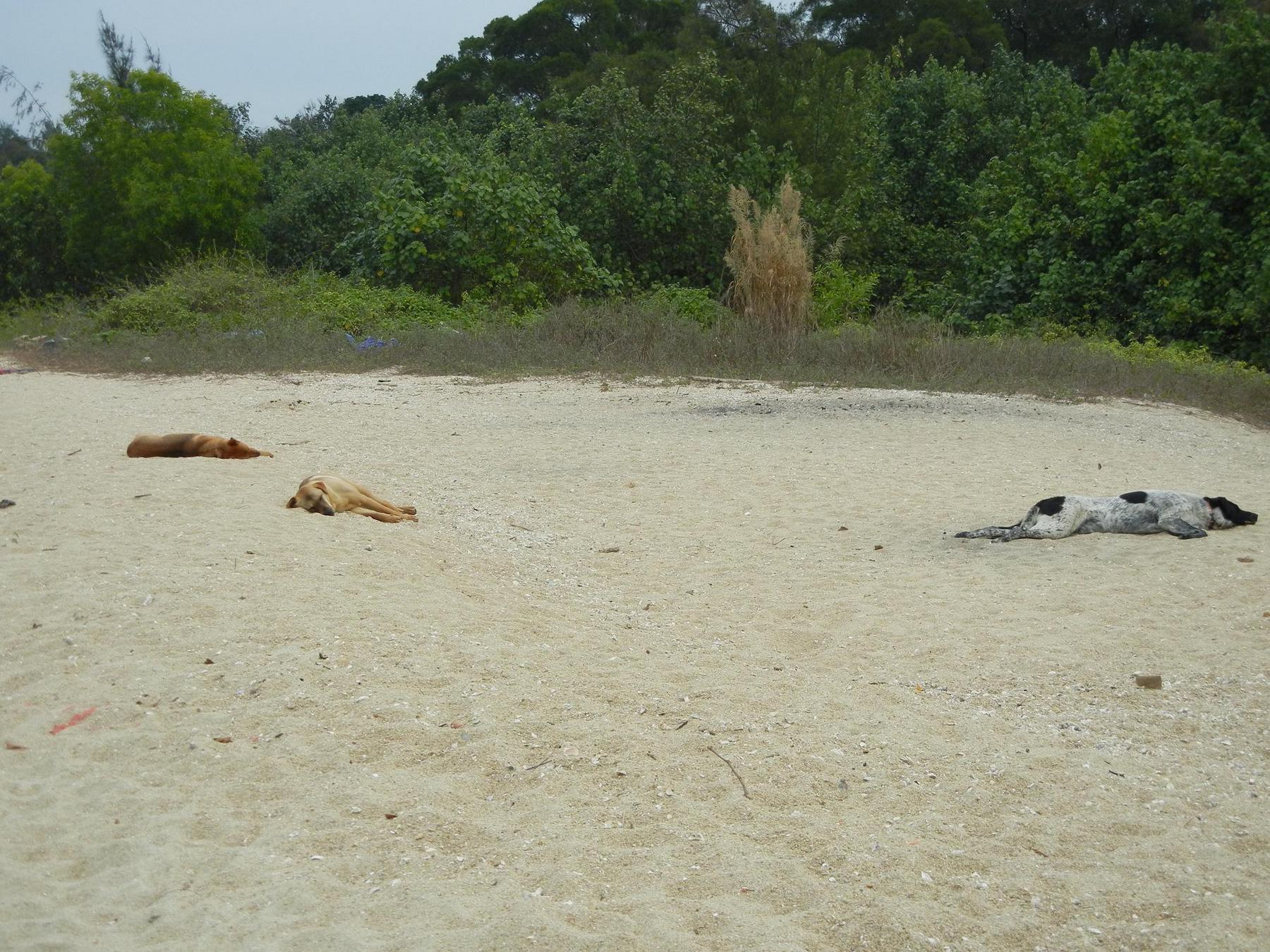 Medalene :: 04feb12WuKaiSha :: Three dogs were lying on the sand, for sunbathing