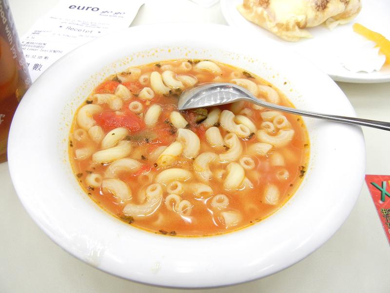 Medalene :: 26dec10LaiChiWo :: macaroni in minestrone, no meat, just soup & pasta