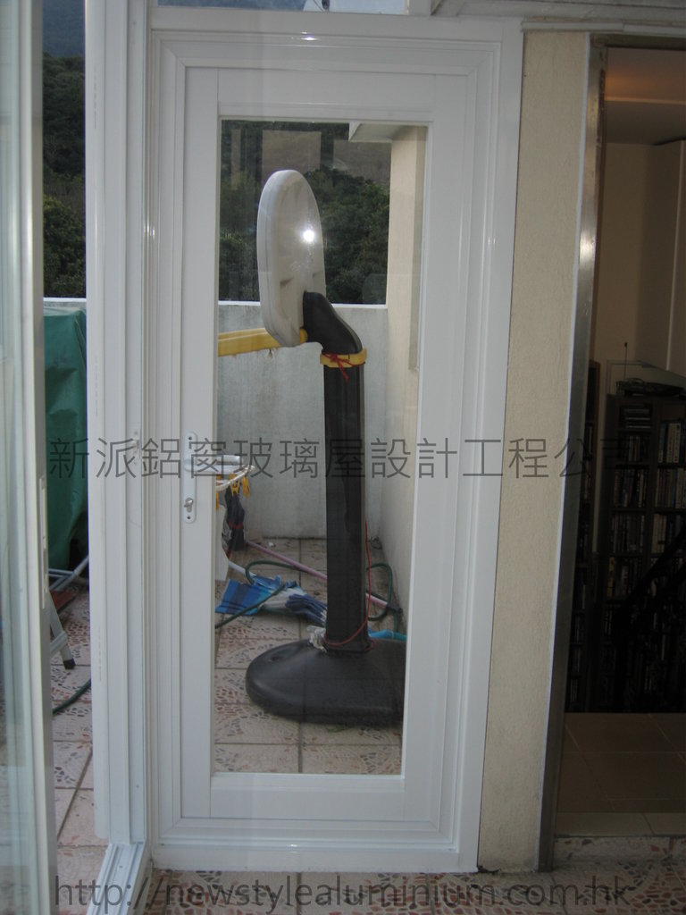 新派鋁窗玻璃屋設計工程公司 :: 西貢沙角美村玻璃屋 :: 白色鋁框配強化玻璃高級掩門
