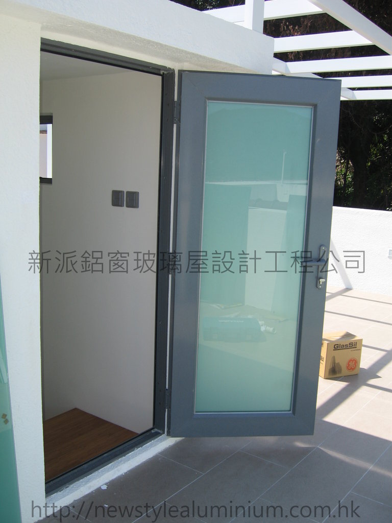 新派鋁窗玻璃屋設計工程公司 :: 西貢禁區高塘下洋村屋 :: 天台門