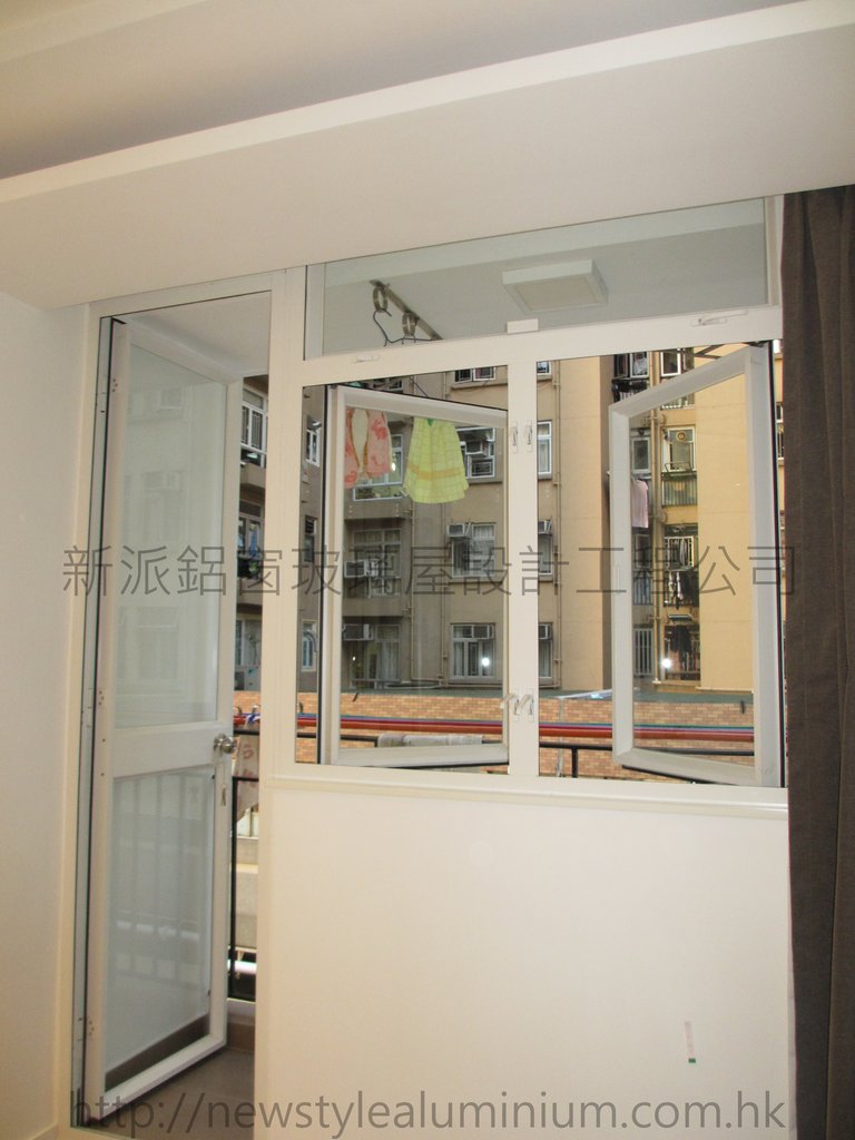 新派鋁窗玻璃屋設計工程公司 :: 美孚新村56座 :: 美孚新村露台玻璃門 (5)