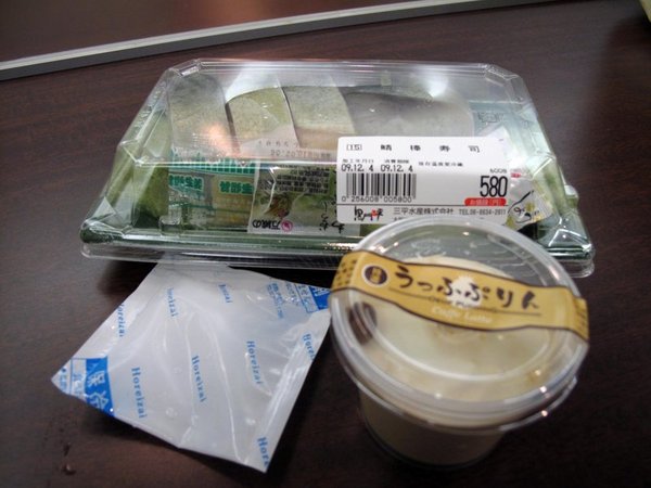 sillysillyca :: 2009關西之旅(28.11.09-4.12.09)-大阪, 姬路, 神戶 :: 在心齋橋買了布甸做甜品. 還有在黑門市場買的鯖魚壽司