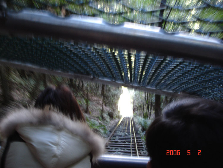 呼哇!這張感覺夠刺激!藍山國家公園礦坑絞鍊纜車,52度傾斜度的威力,好玩!(其實速度很慢...)
