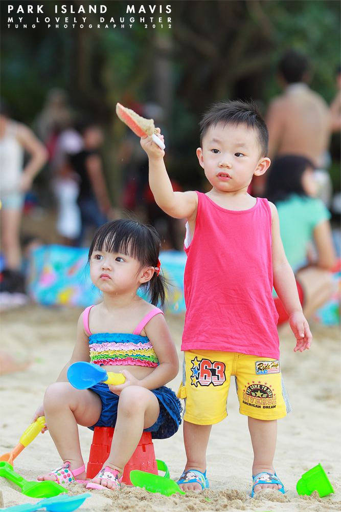 炎炎夏日...晴晴同Hei Hei去沙灘「筆」水玩沙