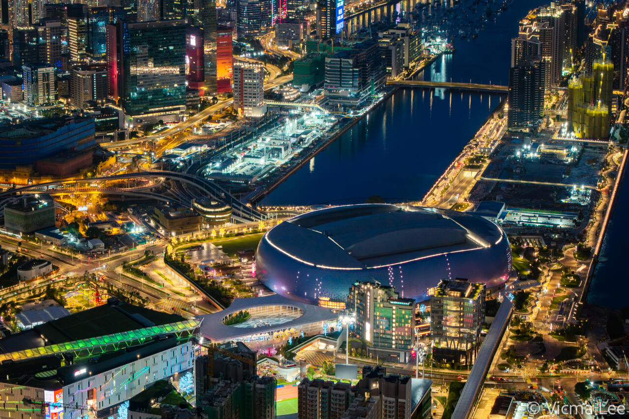Vicma :: 風雲變幻下的西九黃昏,燈影裡的啟德主場館, :: DJI_20250622193807_0074_D