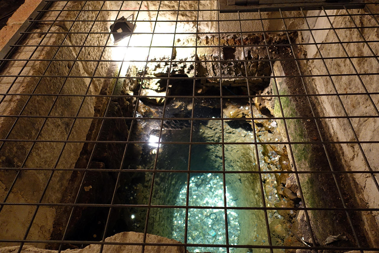 A freshwater well in the middle of the room. The water was believed to have healing properties