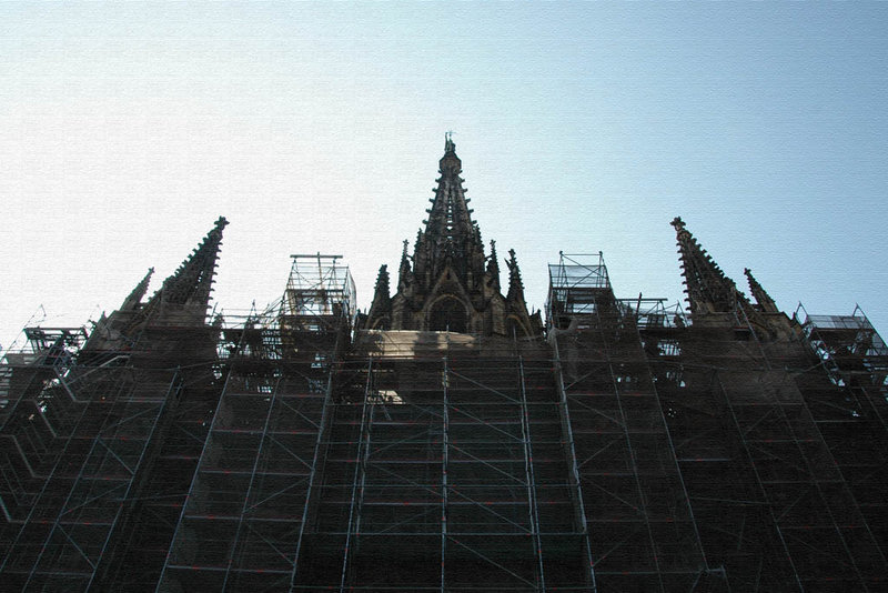 Front view of Barcelona cathedral, under renovation
