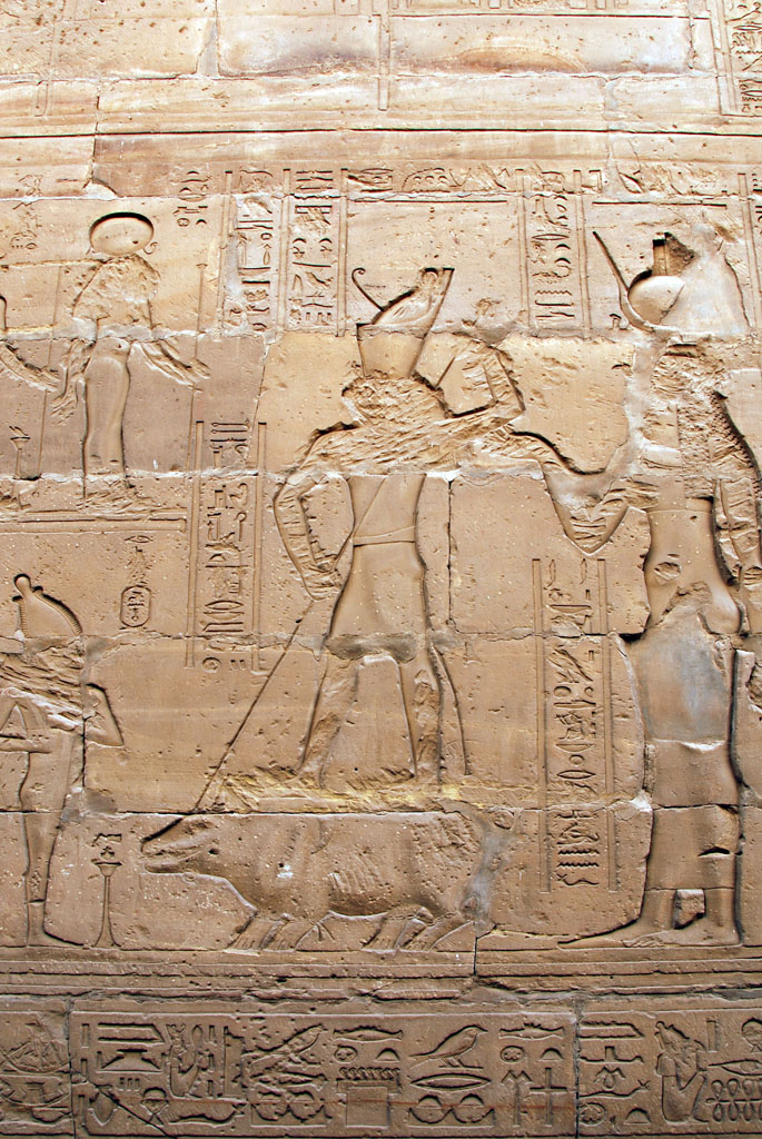 Vincent Poon :: Edfu (21st Apr 2007) :: Paintings on Passage of Victory:Horus finally found Seth the Hippo and killed it.