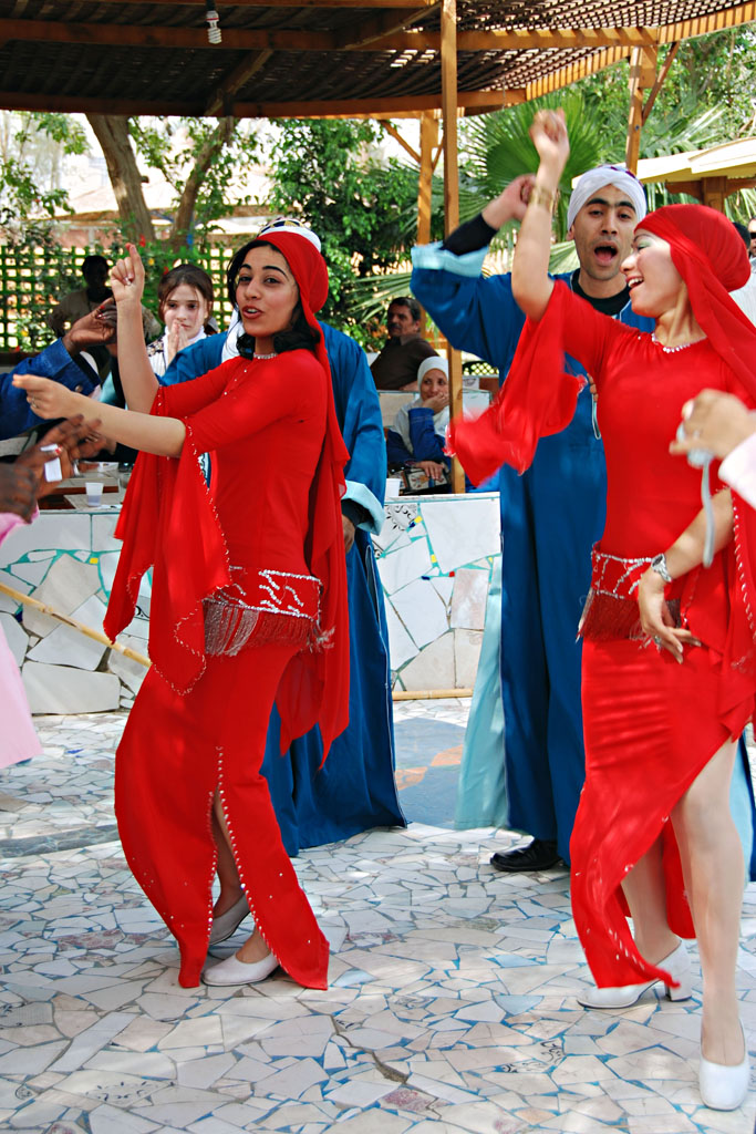 The performers are dancing happily in the Lotus Cafeteria... their performance is way better than those "villagers" out there!