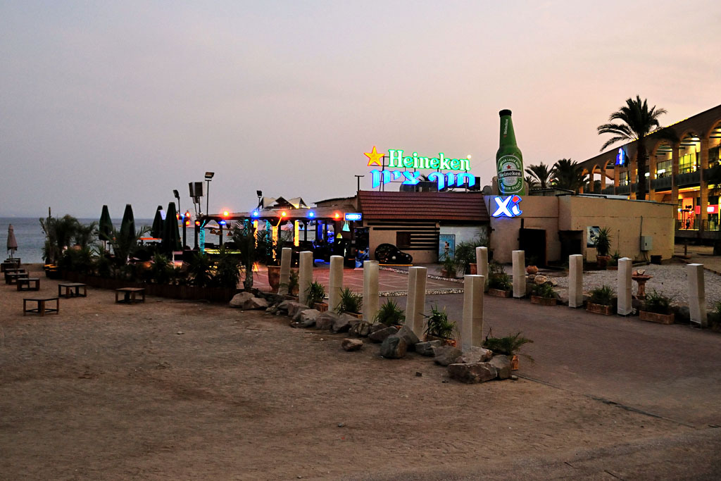 Vincent Poon :: Eilat and its Airport :: A beach front shopping mall and restaurant. It was getting dark, no good stuff could be found on the beach~