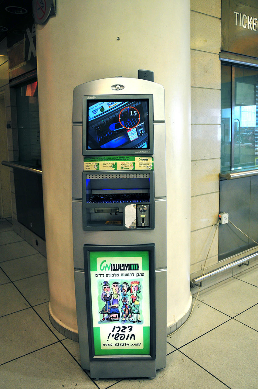 Mobile charging station, it has all the different adapters for different mobile brands. But that was in 2008, your non-smart phone battery should be able to last for quite a while without charging...