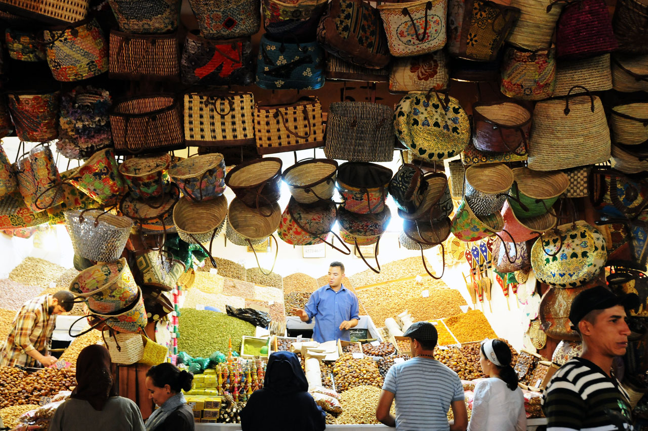 Vincent Poon :: Medina of Marrakesh :: Buy a kilo of dried dates and you get one of the recycle bags above