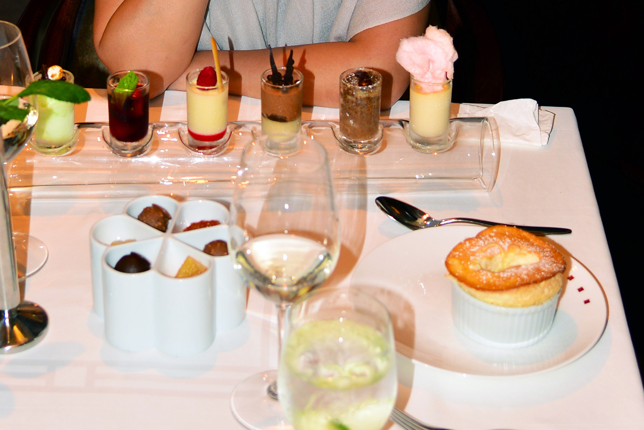 Vincent Poon :: Murano (4th Sep) :: The desserts were: Grand Marnier Soufflé, Le Petit four and a selection of trifles and mousses