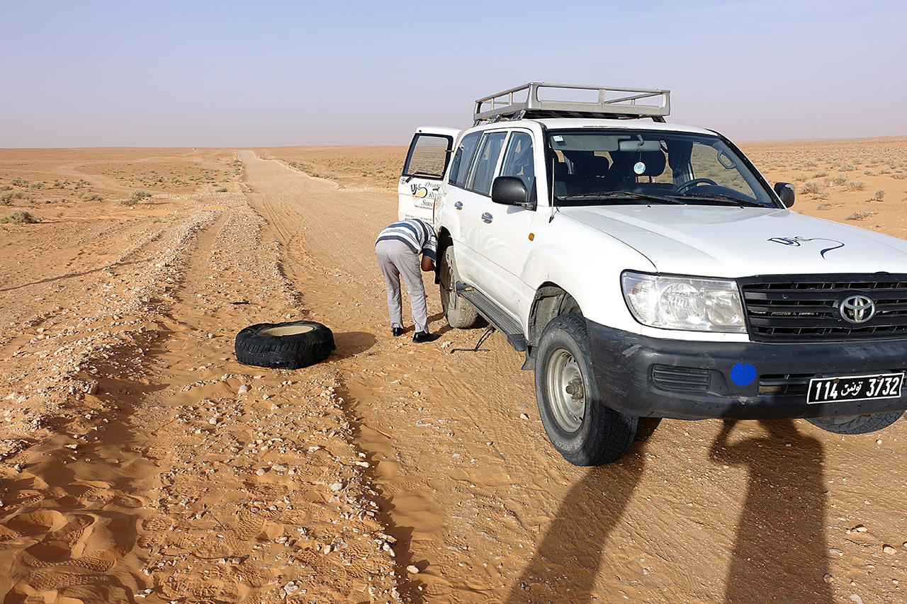 Our driver was changing tyre for the other jeep... luckily that didn't happen while we were lost on the first night
