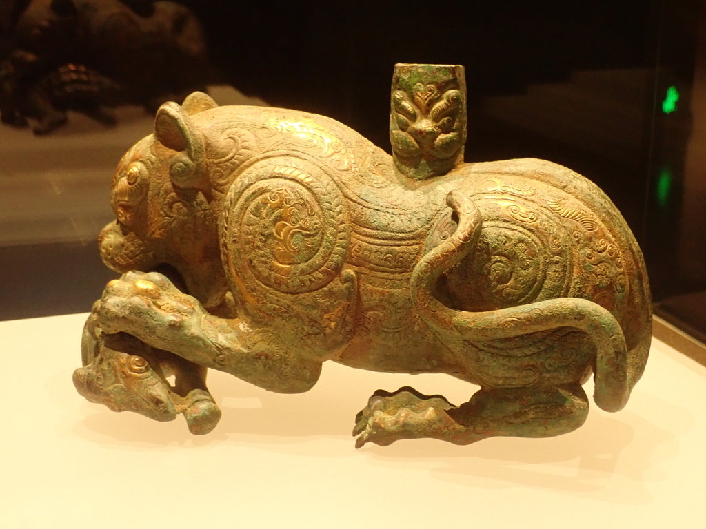 Wendy Lam :: D36 甘肅蘭州 (甘肅省博物館、蘭州巿七里河區小西湖公園、黃河母親河像雕塑、白雲觀、蘭州清真寺) 2019-10-10 :: 青銅鎏金虎噬羊形器座-春秋移交 PA104669