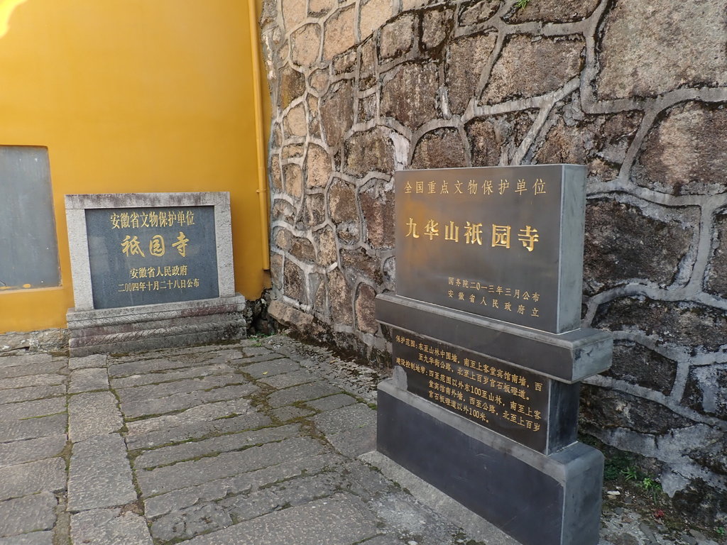 明代依山而建的祇園禪寺是九華街道的第一座寺院,與甘露寺,百歲宮,東崖禪寺合稱九華山四大禪林,寺院規模很大,層層叠叠的宮殿式建築像古時的皇宮一般.